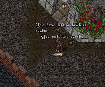 - Murderers will flag as blue to others (unless criminal) until they attack the gate or enter the courtyard.