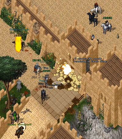 - The Castle Gate has 10,000 HP and can only be damaged by melee attacks or Siege Cannons.
