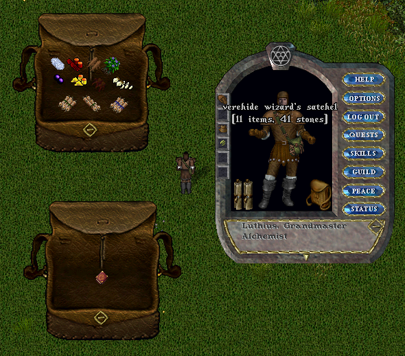 A Wizard’s Satchel can be equipped (occupying the Outer Body layer) or simply kept in the backpack. Both placements provide the player with the satchel’s weight reduction and resource conservation effects. Additionally, Reagents and Spell Scrolls stored in a Wizard’s Satchel no longer count toward a player's Item Count, whether it is equipped or carried in the backpack.