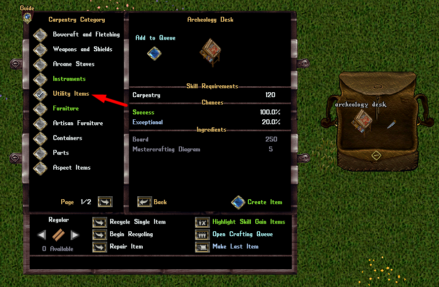 Players can only use an Archeology Desk if it is locked down inside a house. To access its features, they must double-click the desk to launch the Archeology Desk Menu.