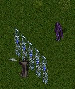 Nightshade | Poison strength on selected target determined by Magery, Poisoning, and distance |