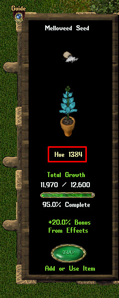 Melloweed plants can be grown like any other plant using a Plant Bowl. Once planted, each Melloweed plant will adopt a randomized rare hue. Players can check the hue of their Melloweed plants by opening the Plants Menu, where the specific Hue Number will be displayed below the preview of the plant.