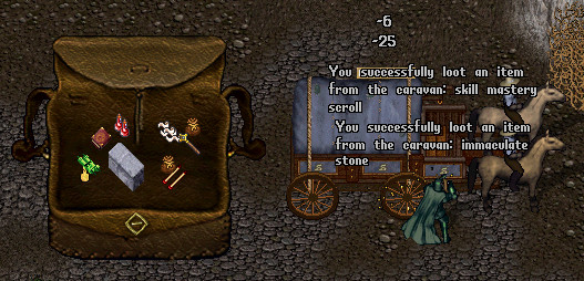 As a hostile player damages the Trade Caravan, there is a small chance that they will loot an item from its cargo. However, attacking a caravan also causes a significant amount of loot to be lost permanently, reducing the total rewards that could have been earned by either side.
