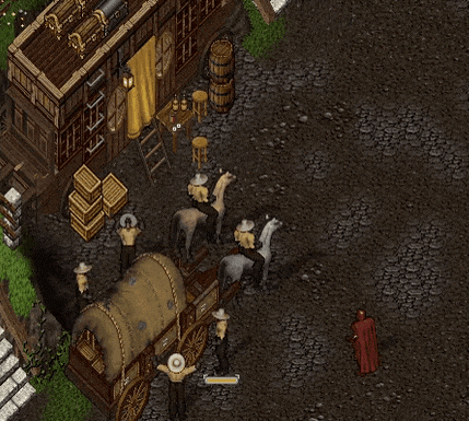 Before setting out, the Trade Caravan will assemble for 60 seconds, allowing time for guild members to arrive. NPC Teamsters will be seen loading the caravan, preparing it for departure. If there are friendly players within 18 tiles of the caravan when the assembly timer expires, it will begin its journey. If no friendly players are nearby, the caravan will take damage every 5 seconds until an escort arrives.