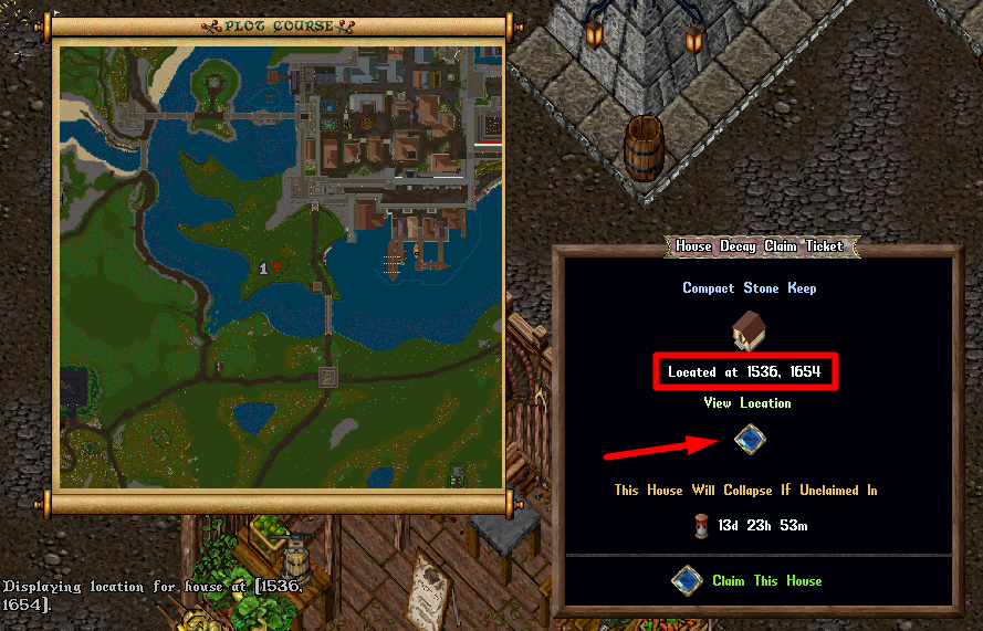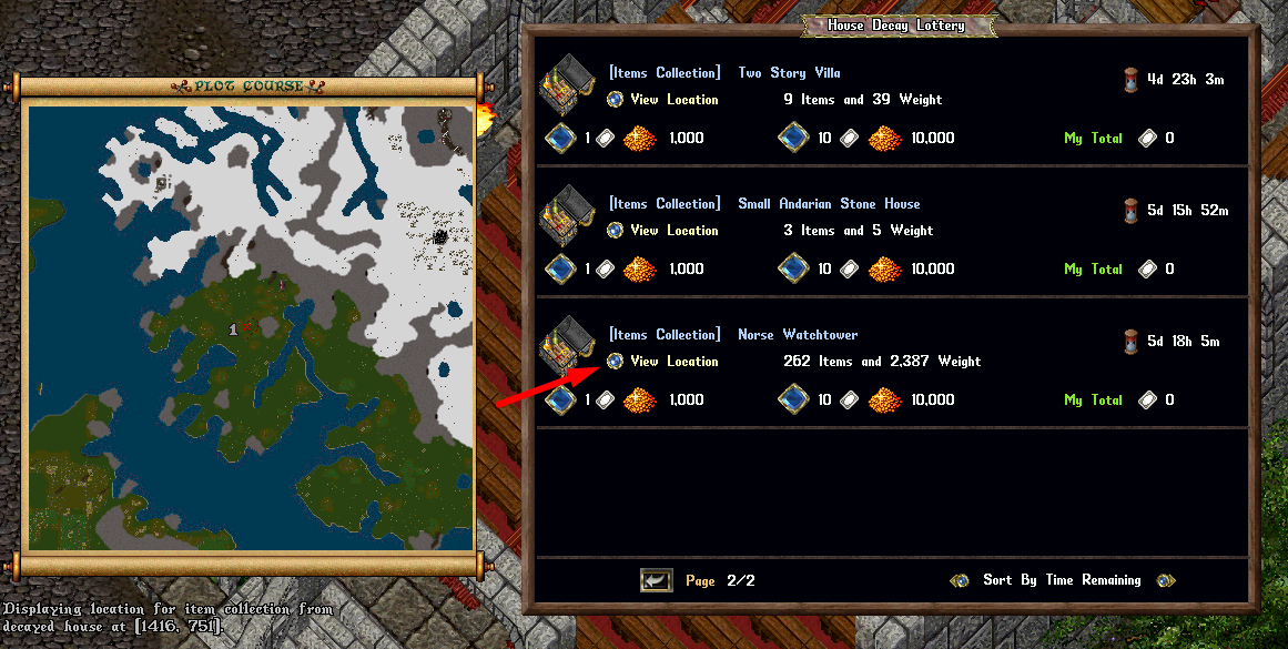 - Players can click the View Location button to see a World Map and Coordinates to where the now decayed house once existed (players may wish to use this information in their valuation of the potential worth of the items in the collection)