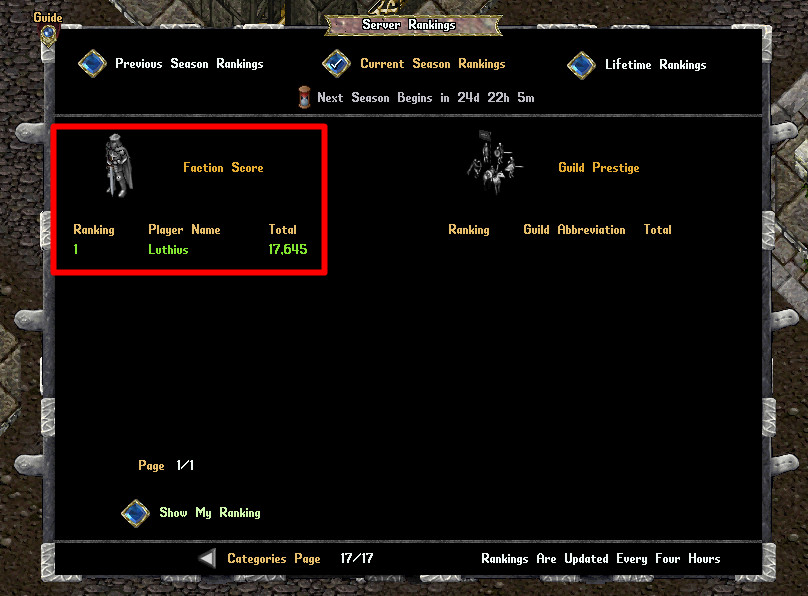 - A [ServerRank category will be created for Factions that is based on how much cumulative Faction Score players earn each season