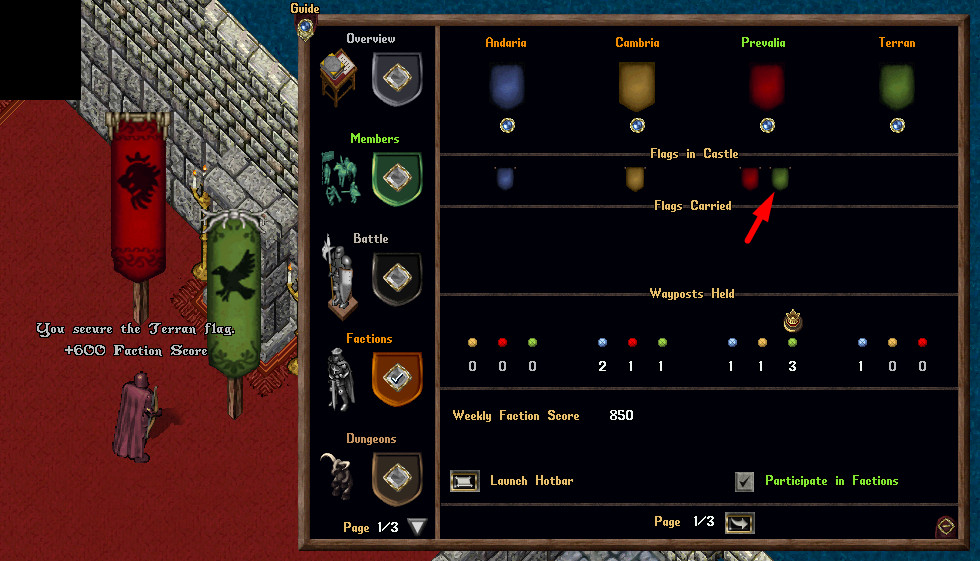 - The Terran Faction currently has 1 Flag Secured in their Castle and the Andaria Faction currently has 3 Flags Secured in their Castle
