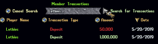 - Players can also click the buttons next to "Player Name", "Transaction Type", and "Amount" and "Data" to sort results by those properties