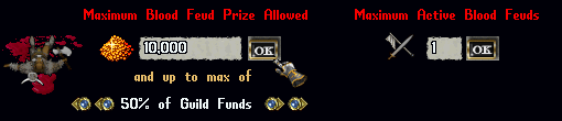 - Guildmasters can set how many Maximum Active Blood Feuds are allowed at one time by entering a value in that field and clicking OK